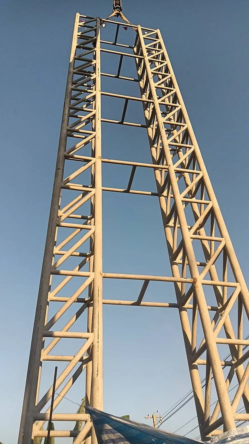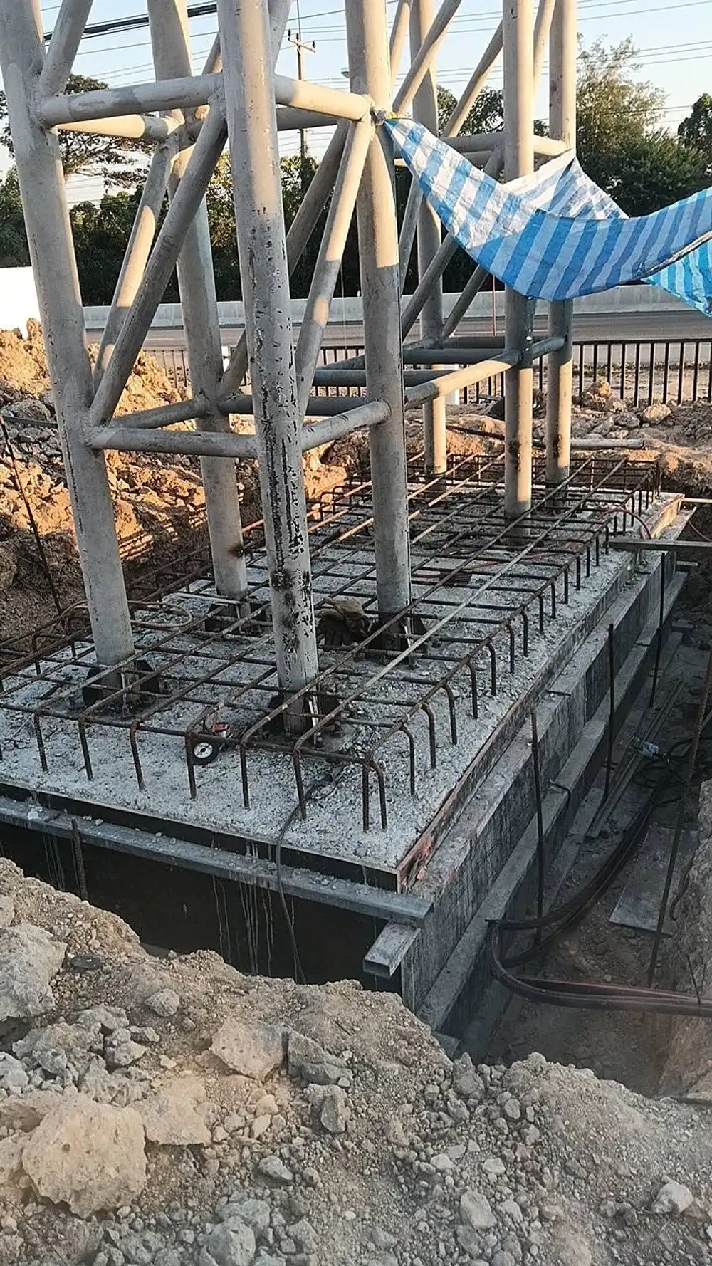 งานโครงสร้างเหล็ก เสา Pipe ขนาด 5นิ้ว หนา 4.5mm 4 ต้น /ข้าง Truss ด้วยเหล็ก Pipe 2.5นิ้ว หนา 3.2mm เชื่อมโดยรอบทําสีกันสนิมและสีนํ้ามัน หุ้มอลูฯคอมโพสิตพร้อมป้ายอักษรตราสัญลักษณ์ และกล่องไฟแบนเนอร์